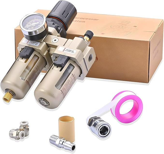 【適当な圧力を楽調整】≪1≫本製品の一つの特徴は圧力を楽に調整できます。高圧の気体を一定の圧力へ下げ、エアコンプレッサーやエアブラシやエアーサンダー等のエア駆動工具を使用する時には肝心ななことです。≪2≫調整方法:調整弁を上方へ引き、時計方向へ回すと、圧力が上がります。反時計方向に回すと圧力が下がります。必要圧力まで調整したら、調整弁を下へ押し、ロック状態にします。