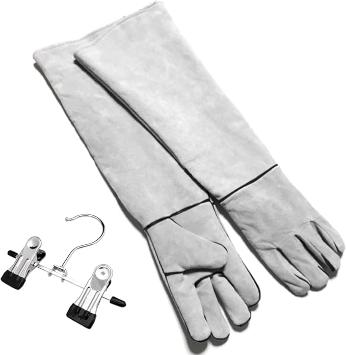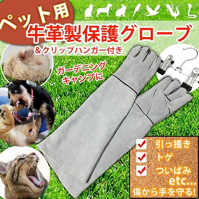 TAKES ペットグローブ 噛みつき防止 引っ掻き 犬 猫 爪切り 爬虫類用 牛革 ロング60cm ミニハンガー付き | ryouhinshop