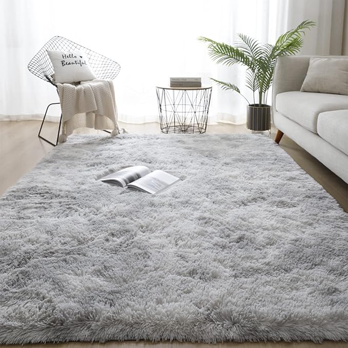 ラグ カーペット ラグマット 長方形 絨毯 滑り止め シャギー もこもこ サラサラ オールシーズン 秋冬 長毛 北欧風 無地 おしゃれ 家庭用 (140*200 グレー)