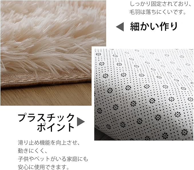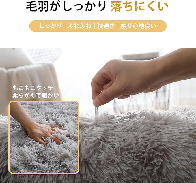 【もこもこ】約4cmの長い毛羽はきちんとしていて緻密で、ミンクの毛皮のような光沢があり、ふわふわで染めた色もかわいいです。細かい継ぎ目でしっかり固定されており、毛羽は落ちにくいです。掃除の場合は掃除機を使用することをおすすめします。