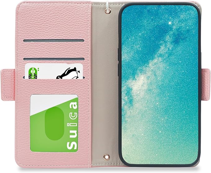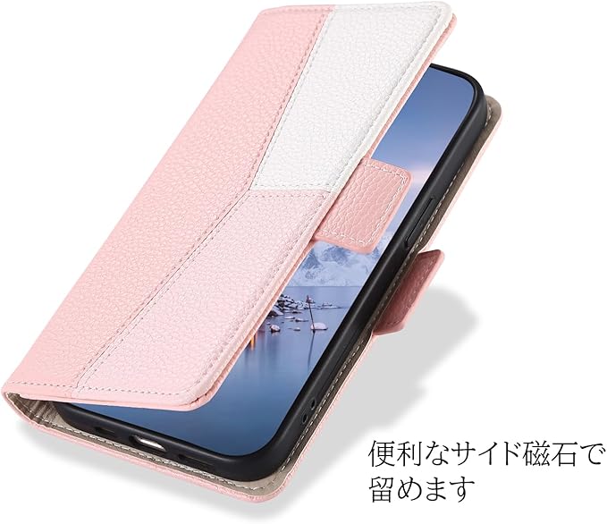 【ストラップ付き】ストラップ付き、持ち運びが便利でアクセサリーとしてもオススメです。さらに、使いやすいために、左上に金具と左下にストラップ穴がついています。好きなストラップをつけられます。【マグネット式】さらに、マグネットは内臓に配置され、磁気カードに影響がほとんどありません。カバーの開閉は便利で片手で操作可能です。 【スタンド機能】スマホ横置きでスタンド機能も付き、好きな角度を調節できて、両手が解放され、通勤・通学などの移動、新幹線や飛行機での長期距離移動など、お好みの角度で動画視聴などを楽しめます。