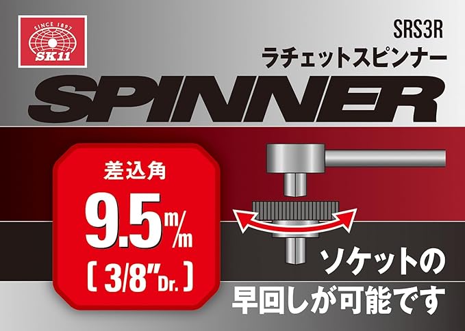 SK11(エスケー11) ラチェットスピンナー 差込角 9.5mm 3/8インチ SRS3R