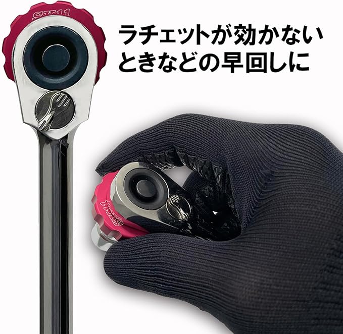 ●ソケットとハンドルの間にセットする。ラチェット機構が効かない時(空転トルクが大きい時)の早回しに便利