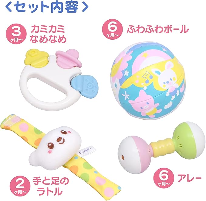 トイローヤル ベビートイセット ( ボール / アレー ガラガラ / 歯固め / ラトル ) トイセット 赤ちゃん ( 軽い / 手洗い可能 ) おもちゃ 鈴の音 ギフト プレゼント