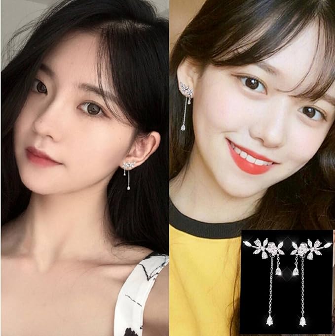 大人気韓国ドラマ「キム秘書はいったい、なぜ?」 キム・ミソ役の韓国女優パク・ミニョン 「青い海の伝説」人魚役チョン・ジヒョン、韓国トップインフルエンサーテリテリが着用しているデザインモデルシルバー水ドロップフラワーリーフクリスタルピアス両耳セットになります。