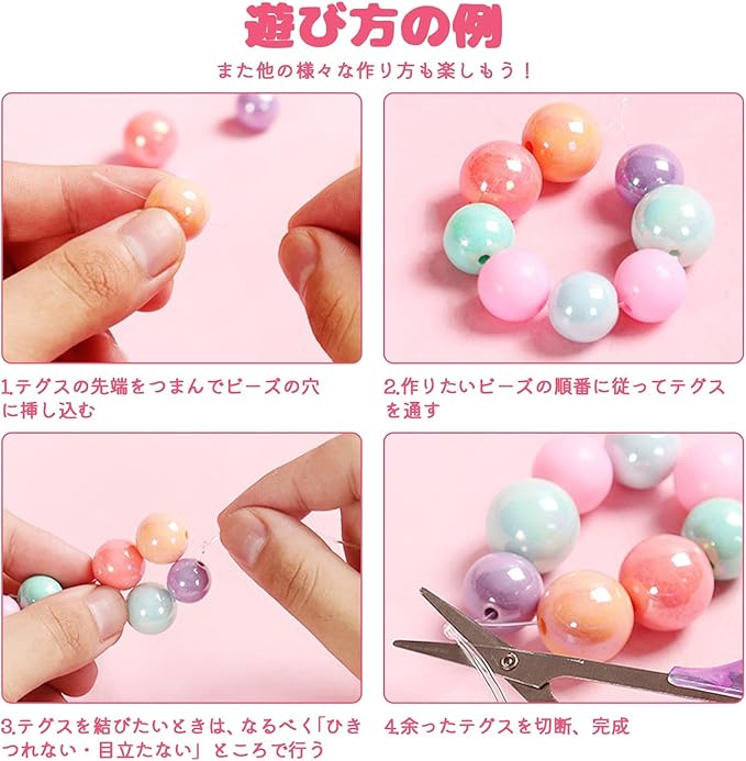 「想像ひろがるビーズ」ビーズおもちゃは子供の手先が器用にするの手芸キットだけでなく、色と形が様々のビーズをどうやって並べようか考えることで、子供たちの色彩感覚と創造力の向上を期待できる知育おもちゃでもあります。6歳以上のお子様に使用をお勧めします。