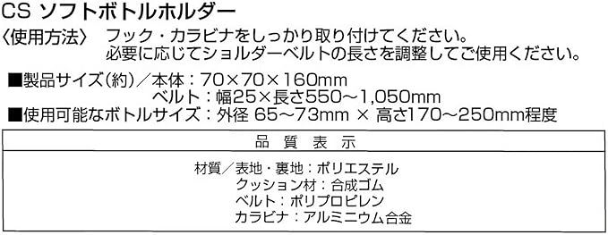 キャプテンスタッグ(CAPTAIN STAG) ペットボトルホルダー ボトルカバー ドリンクホルダー 水筒カバー CS ソフトボトルホルダー 肩掛けショルダーベルト付き 長さ調節可能 カラビナ付き 【ペットボトル500ml~ステンレスボトル500ml程度対応】 ベージュ ブラック UE-4921