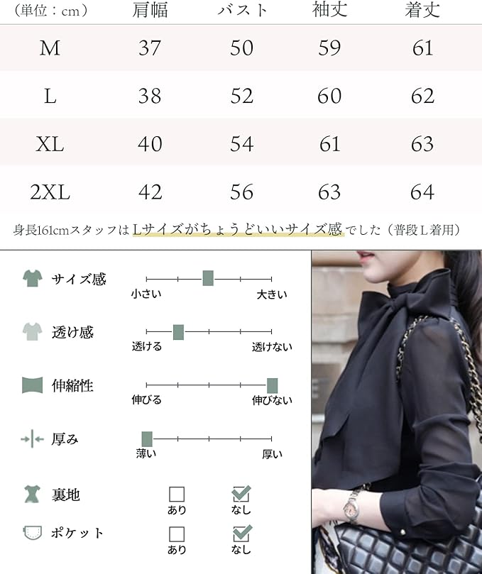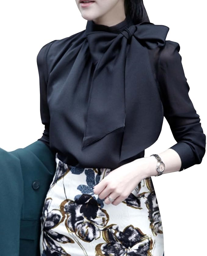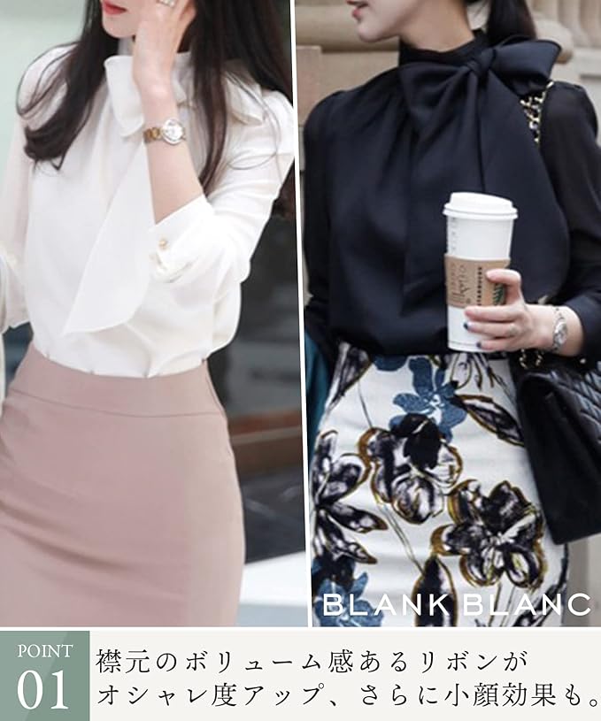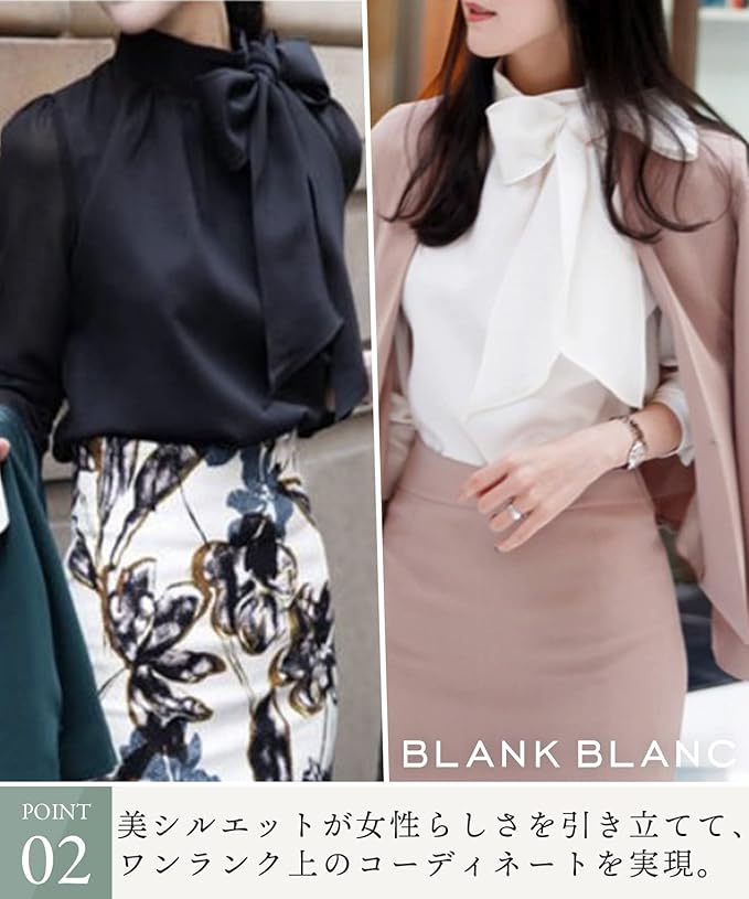 [BLANK BLANC] ブラウス 立ち襟 リボン シフォン トップス 長袖 トップス エレガント フォーマル レディース 春