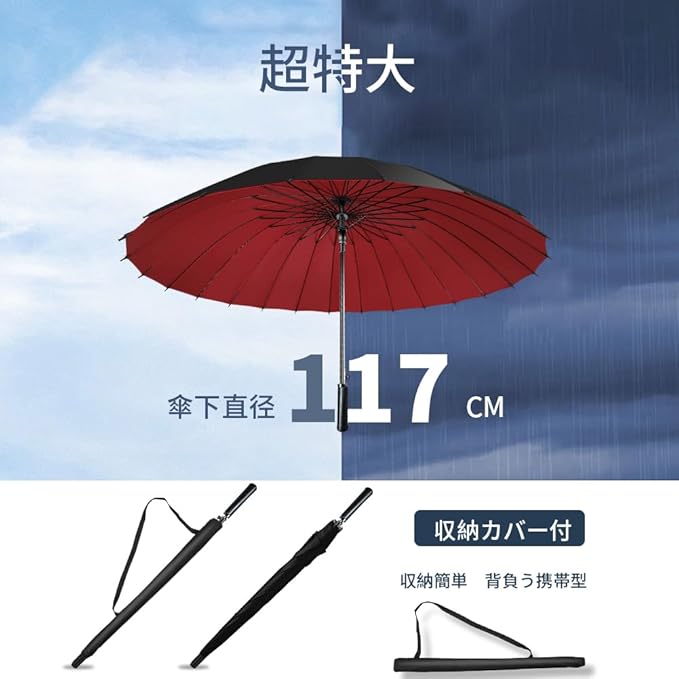 Dlin 傘 メンズ 長傘 24本骨 強風に強い傘 革製手元 紳士傘 210t二重傘布 高強度グラスファイバー 大きい 超撥水 梅雨対策 豪雨対策 超高密生地 おしゃれ 傘弧长132 男女兼用 大きな傘 長さ86cm ジャンプ傘 | ryouhinshop