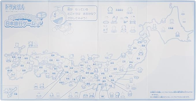 「どこでもドラえもん日本旅行ゲーム」シリーズのポケットサイズ版です。 どこでもドアを使って、全国各地に出かけたドラえもんが、その土地の有名人・食べ物・お祭り・名所・伝統芸能などをモチーフに変身したのが、「どこでもドラえもん」です。 この『どこでもドラえもん 日本旅行ゲーム+ミニ』では、3つのゲームで遊べます。