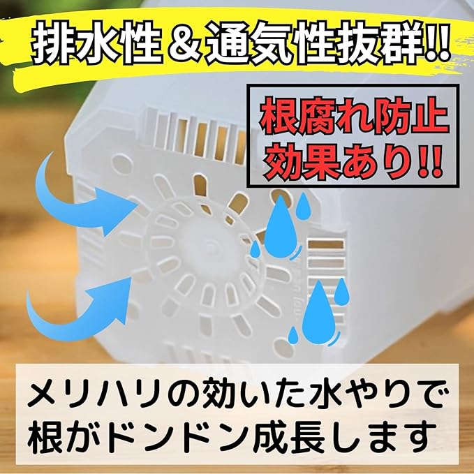 底には穴がたくさん空いています♪排水性&通気性抜群です‼根腐れの心配がなく、酸素が根に届き成長速が早まります♪