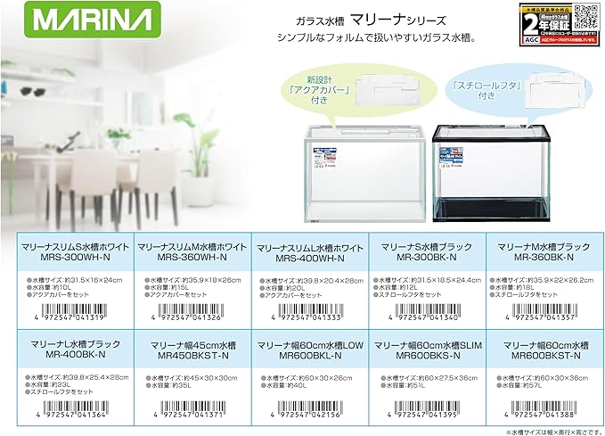 セット内容:ガラス水槽、フタ(アクアカバースリム400N)