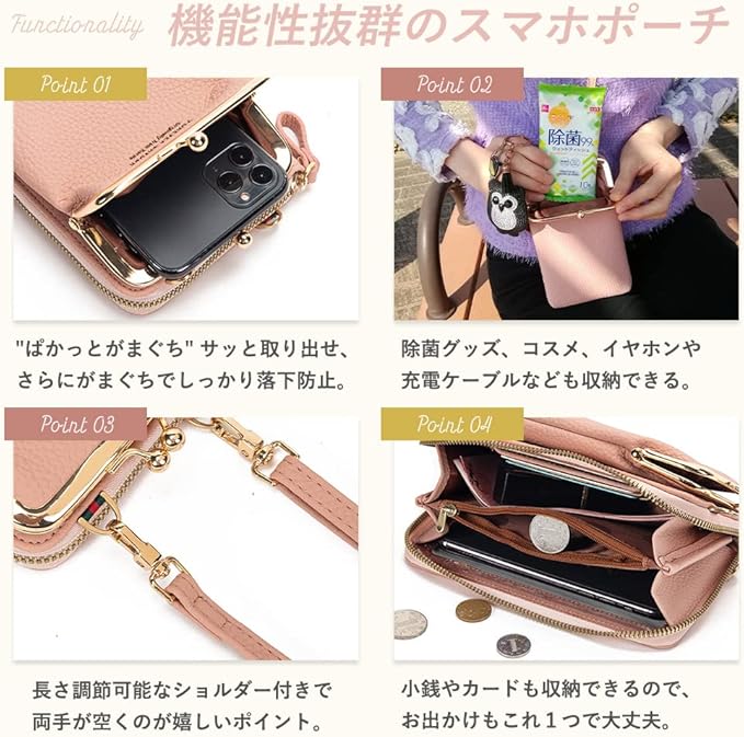 [Your Smile is My Gift] スマホポーチ レディース ショルダー 入れたまま操作 スマホポシェット お財布ポシェット がま口