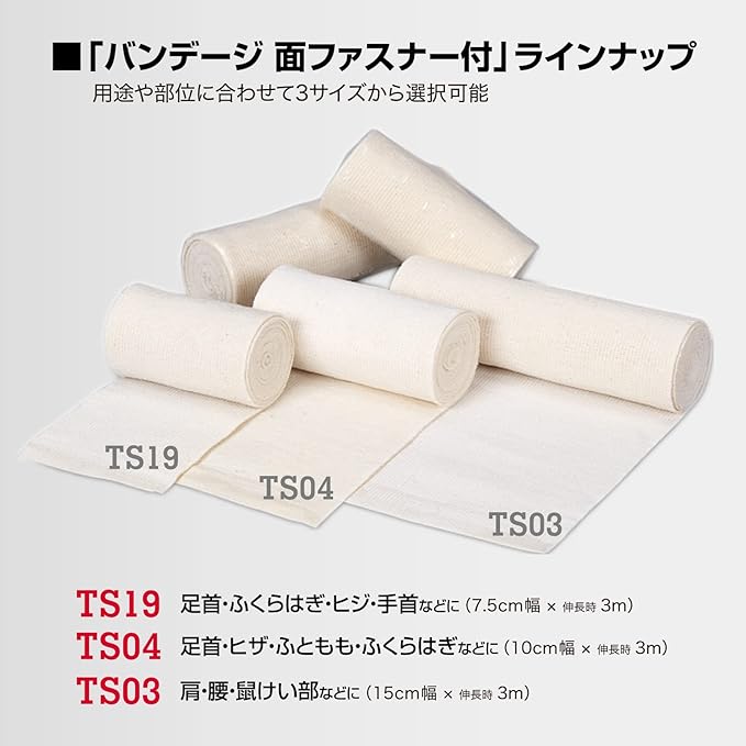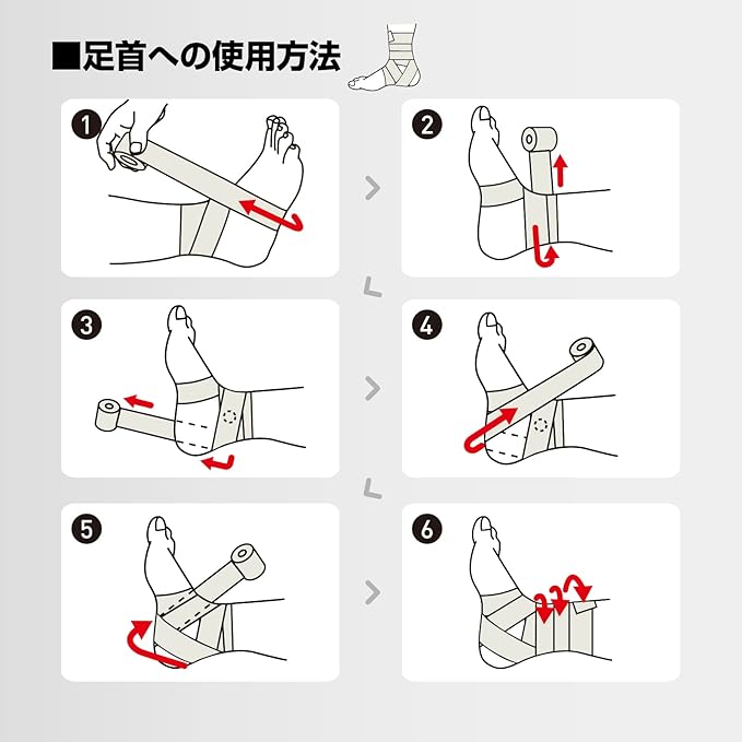 【用途】●RICE処置(応急処置)用品の一つとして●テーピング、サポーターの代用(圧迫サポート用)として【使用部位】足首・ふくらはぎ・ヒジ・手首などに