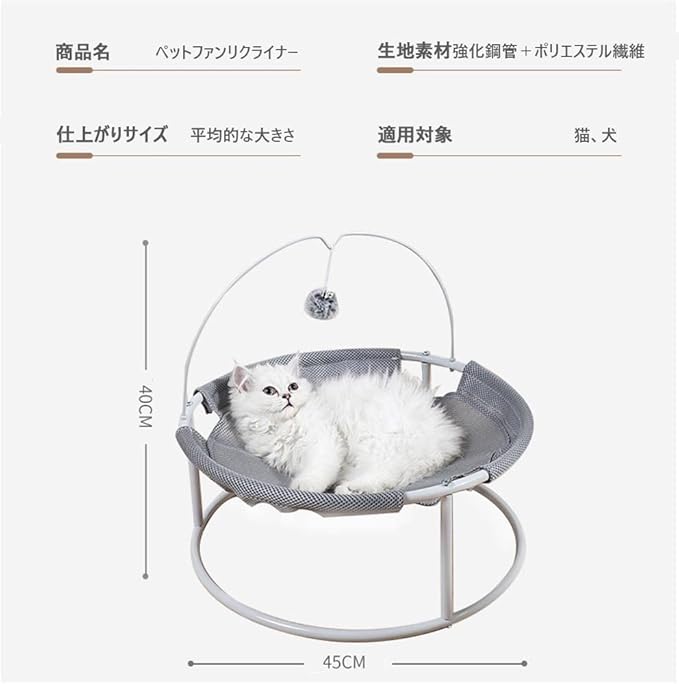 犬 猫 ペット 猫ベッド ペットベッド ハンモック 猫ハンモック 通気性 猫用 ペット用品【2023】ねこ ネコ キャットハンモック 猫用 小型犬用 猫ベッド ハンモック キャットマット 猫寝床 猫用品 ペット用品 滑り止め 自立式 安定な構造 取り外可能 室内 户外 遊び場 対荷重15kg 63*46cm 丸洗い 取り付け簡単 (ブランケット付かない)グレー