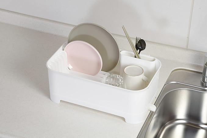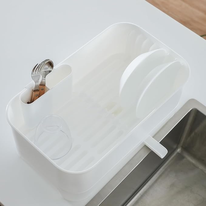 パール金属 水切りかご ラック トレー バスケット 水が流れるトレー 排水ノズル付 タテヨコ 日本製 ホワイト キッチンメイト HB-6827