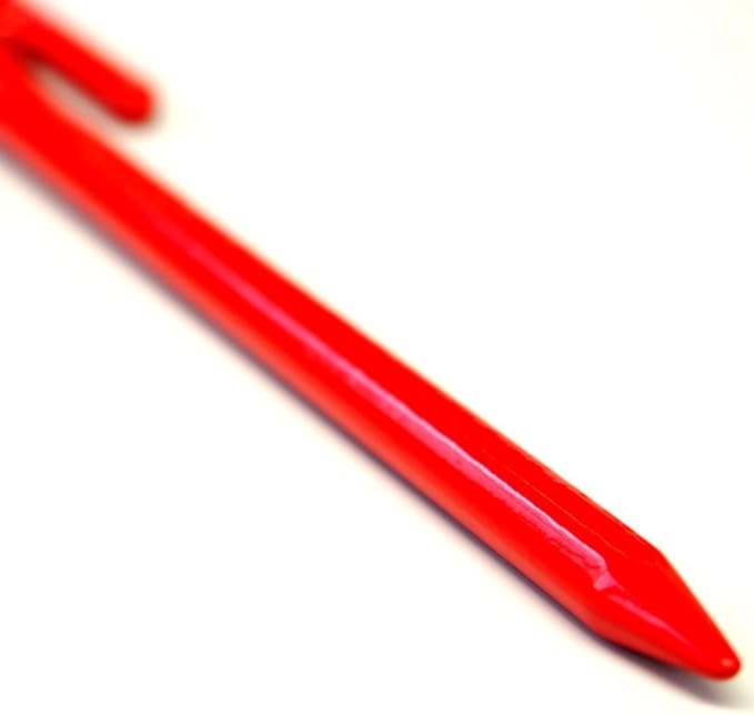 芝生や砂利などに置いたペグが目立たなくて苦労する! そんな声から、あえて色を付けました。 防錆性能に優れたカチオン電着塗装の上から、赤色の粉体塗装を施してあります。 メインポールに最適な全長380mmです。