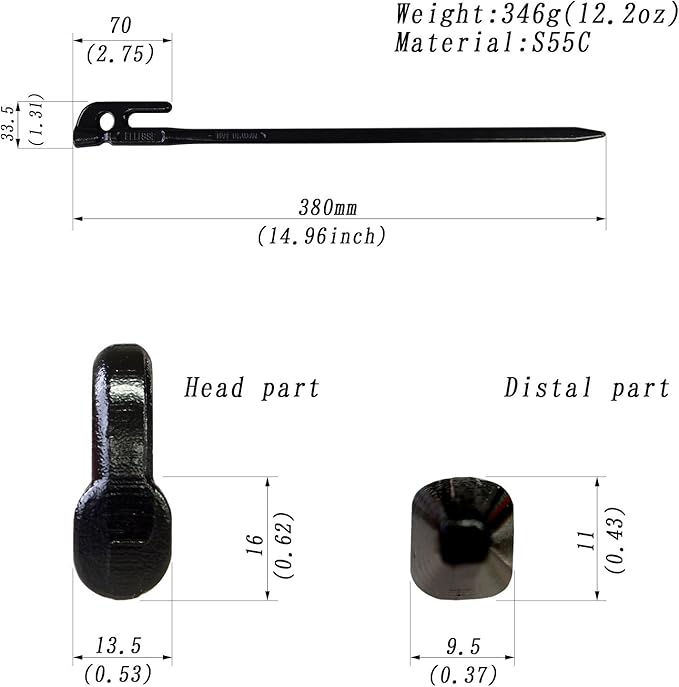 通常の丸棒のペグは地中でペグがクルクルと回り使い勝手が悪いですが、楕円のペグは、砂利や石が混じった固い地面でも入り込みが良く、地中でクルクルと回る事なく、ガッチリと固定します。