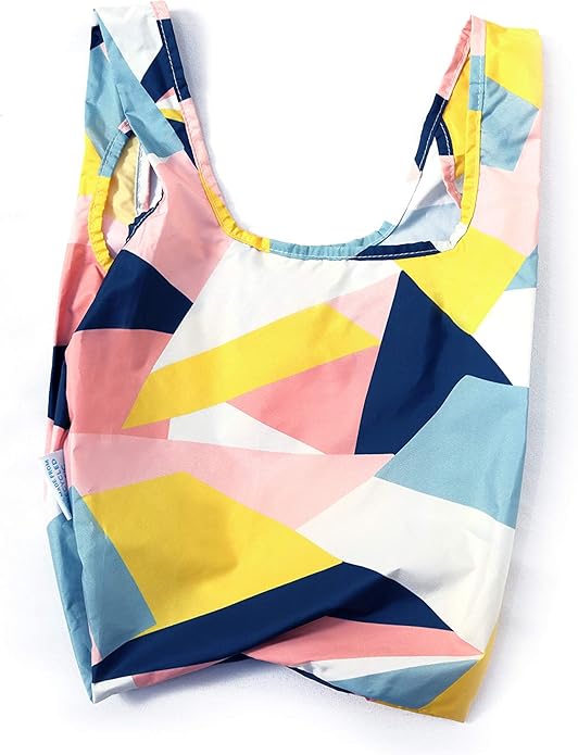 KIND BAGは100%使用済みペットボトルを再生した生地で作られたエコバッグです。miniサイズは4本のペットボトルから1枚のKIND BAGができています。折りたたんでポーチ(本体に付属)に収納。