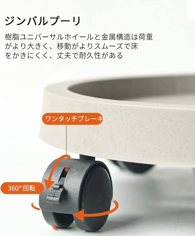 【360 キャスター付き】さまざまな形状の植木鉢に適しており、植木鉢、花瓶、大型植物鉢を簡単に移動でき、ゆかいたを傷つけることなく、車輪に静音設計が施されています。2つのキャスターはロックできるので、安定感があって、生活をより便利になります。