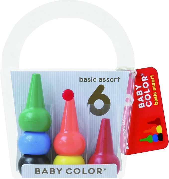 ペンが持てない年齢から使えるクレヨンです。永年の研究から開発された独特の形と、折れにくく、汚れにくい形が特長のクレヨンです。なめても安全な素材を使用。信頼のAPマークを取得しています。衣服についても洗濯で落とせます。クレヨン自体も水洗いできます。中は空洞で先端にも穴がありますので、積み重ね遊びもできますし、万一飲み込んでも空気が通ります。ケースは少し大き目サイズ作ってあり、おかたずけの練習も楽しくできます。基本色の6色セットです。