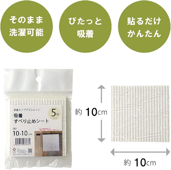 イケヒコ 滑り止め シート シール 吸着 洗える 約10 10cm 5枚入り #2049909 ホワイト