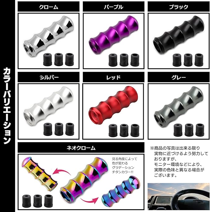 Meliore アルミ 合金 シフト ノブ レバー アダプター M8 M10 M12 3種 付き バンブー 型 汎用 延長 MT AT カスタム ドレスアップ パーツ 社外 品 USDM JDM ネオクローム