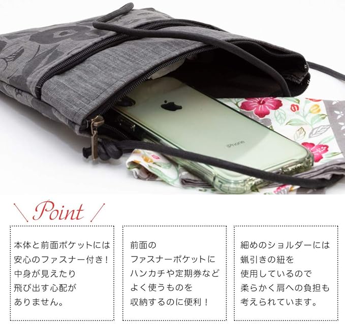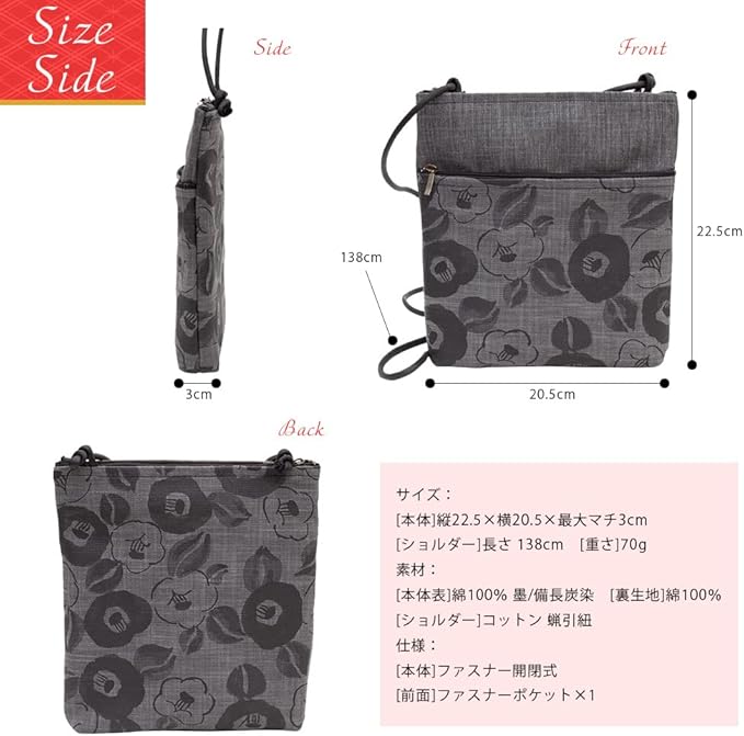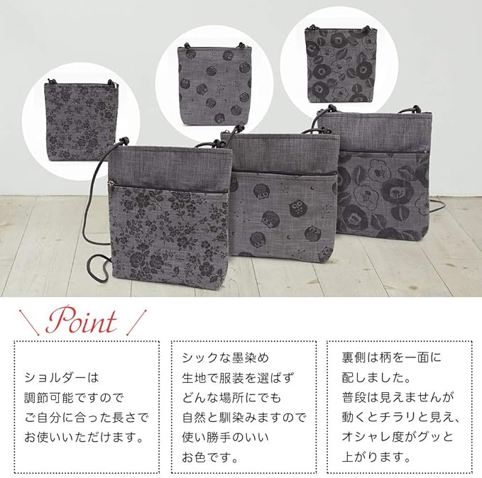 [creareきき] ポシェット レディース 斜めがけ 小さめ 軽量 軽い 日本製 和装 墨 備長炭染め 軽量ミニショルダー ポケット 旅行 ショルダー AS-111