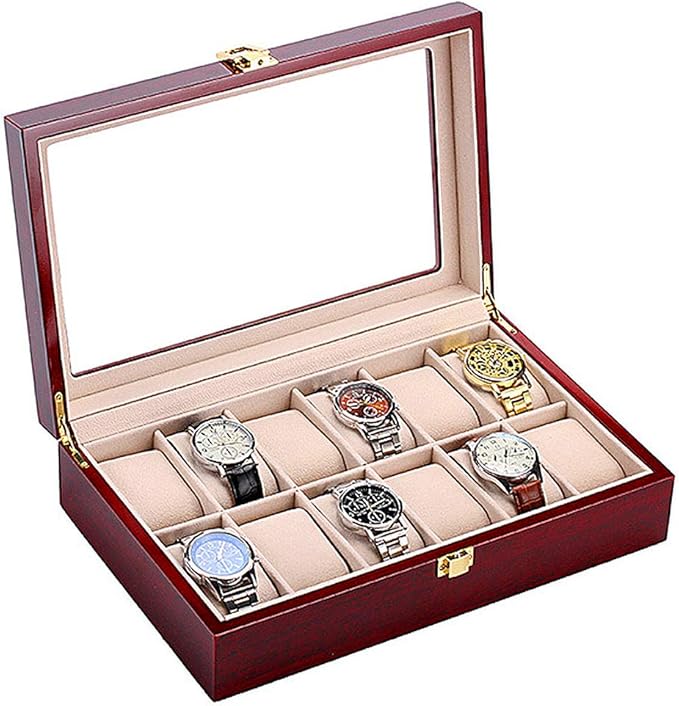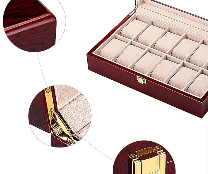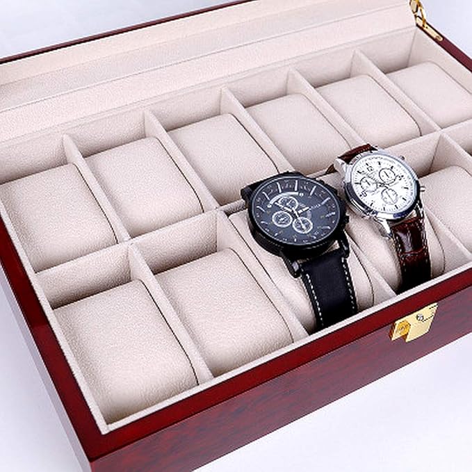「大切なコレクション腕時計を傷やホコリから守る豪華木製12本用収納ケースです」
