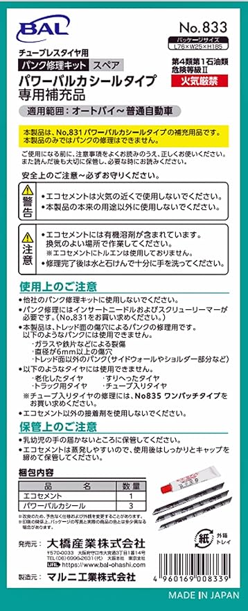大橋産業 パンク修理キット パワーバルカシール補充 品番:833