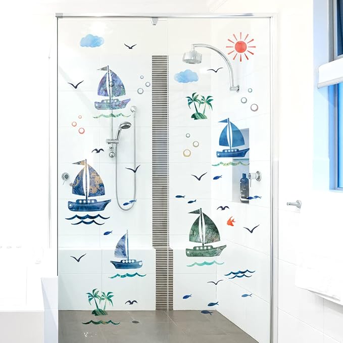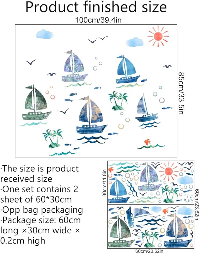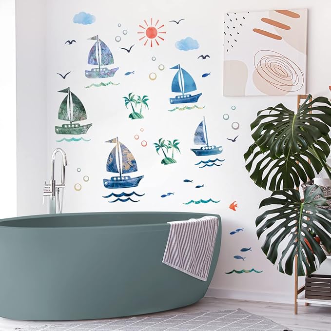 HOTIYOK 帆船 ステッカー ウォールステッカー 海 魚 雲 雁 ウォール シール おしゃれ diy 壁紙 壁 シール 剥がせる 男の子 女の子 寝室 子供 部屋 ウォール ペーパー アート 幼稚園 保育園 はがせる wall sticker 飾り 御洒落 ウォール デコ 壁すてっかー
