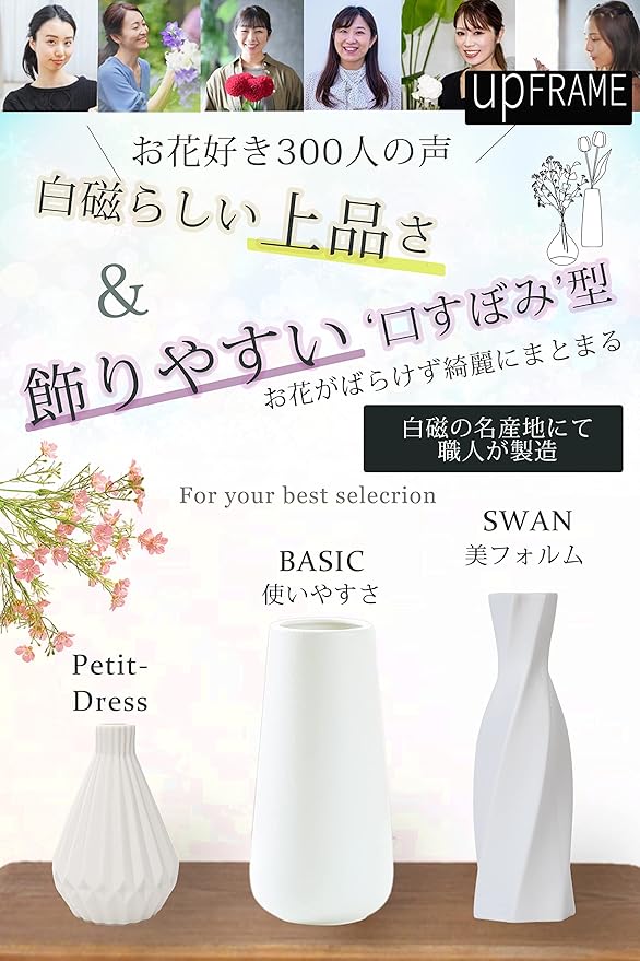 花瓶 陶器 白 フラワーベース おしゃれ 北欧 長い セラミック つや消し 大きい 26cm (スワン)