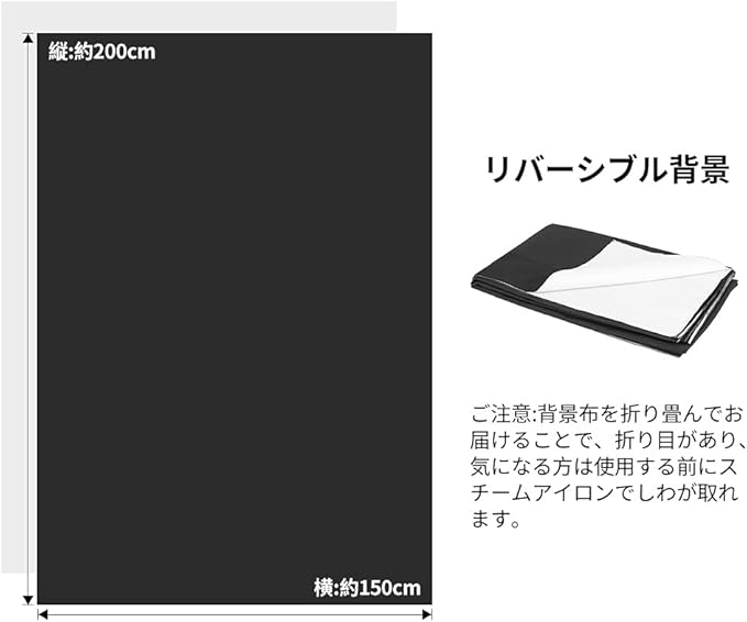 【背景布のお手入れ】背景布折り畳んでお届けることで折り目があり、スチームアイロンでしわが取れます。背景シートは汚れると、手洗いも洗濯機も対応可能です。洗濯後、平に干すことをお勧めいたします。 【ご注意】普通の電気アイロンも使えますが、ポリエステル用(低温)までご設定ください。