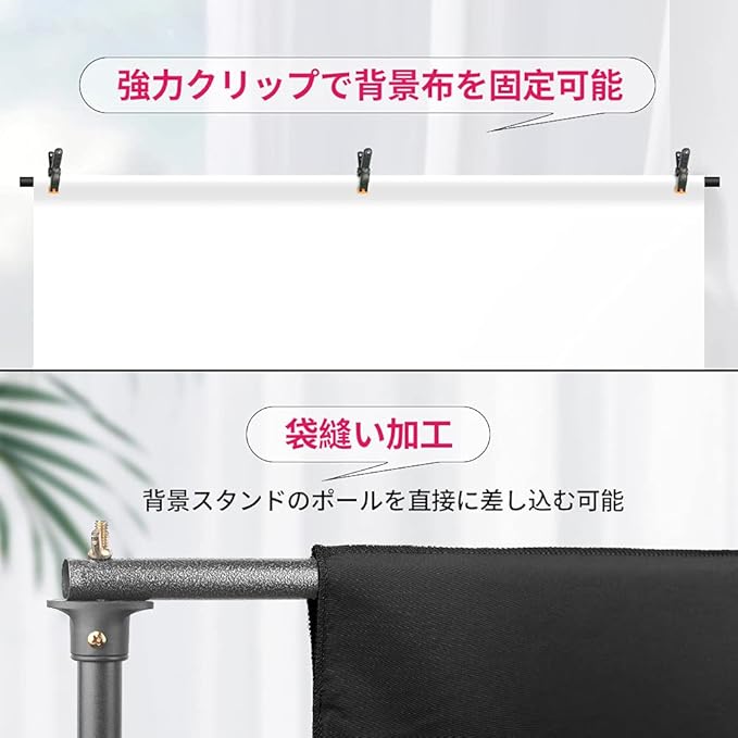 【こだわりの縫製】背景布はこだわりの縫製、糸抜けやすくないです背景布はポリエステル材質を採用し、綿よりシワが目立たなく、垂れ感がよくて、素晴らしいスタジオの効果を提供でき、専門な撮影スタジオにも適用します。