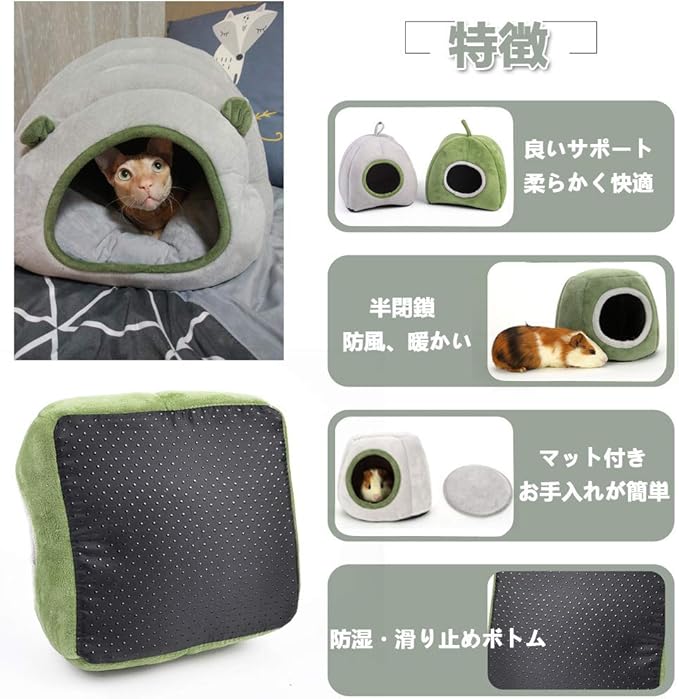 【サイズ】丸いテントの形:長さ20cm、幅21cm、高さ19cm、入口径9cm。カボチャの形:直径21cm、高さ17cm、入口径9cm。交換や洗濯が簡単なクッションが付いています。ペットが住んでいるときに柔らかく、より快適なクッションが含まれています。同時に、お手入れも簡単です。