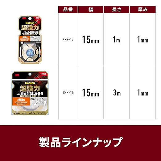 3M スコッチ 両面テープ プレミアゴールド 超強力 なのに あとから はがせる 粗面用 幅15mm 長さ3m SRR-15 セミロング 屋内・屋外兼用