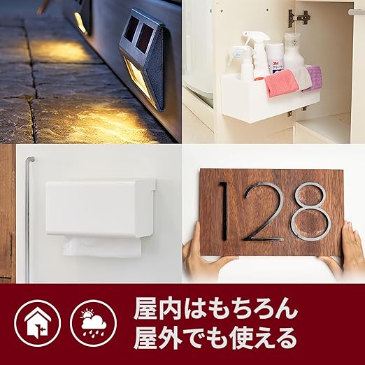 【工具いらずで、パパッと取り付けられる! 】壁に穴をあける必要がないので、工具を使わずに手軽に取り付けられます。両面テープを貼る前に、貼付け面をきれいにし、油分を取り除いて貼り付けるだけ! テープ本来の接着力がでるまでに約1日かかります。