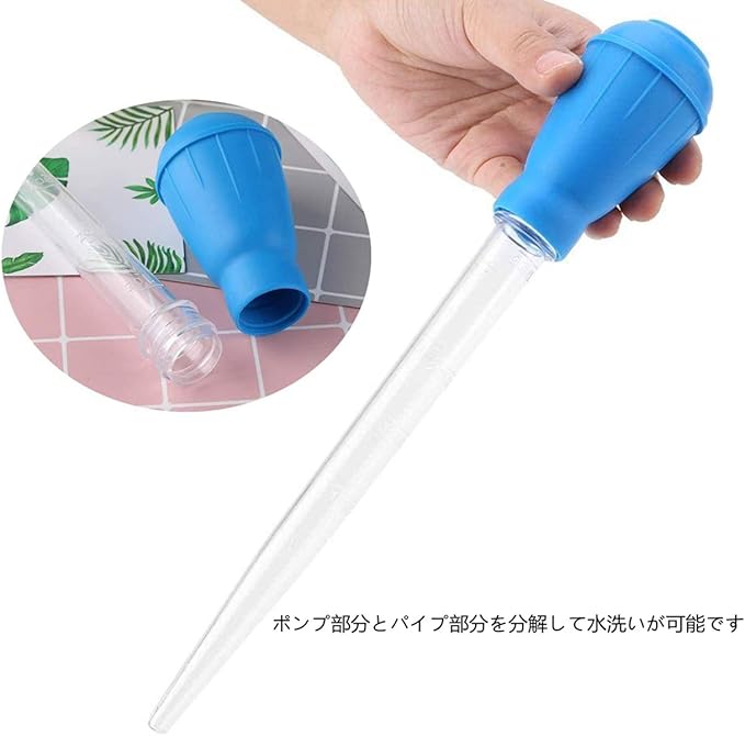 【おすすめポイントⅡ】:水槽の底にある汚れや残留飼料を除去することができます、小型水槽の水換えなど、ちょっとした掃除に最適のスポイトです。