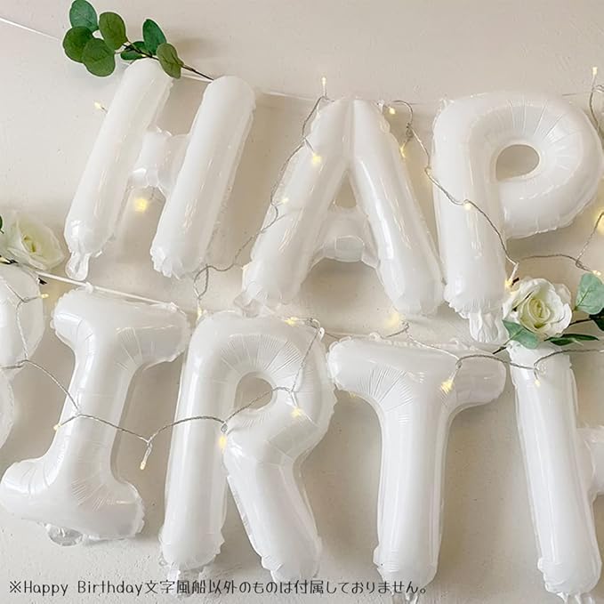 【思わず写真を撮りたくなる白い風船】 海外SNSで大人気のホワイトHappy Birthdayバルーンセット。手に持っての「記念撮影」にも、 壁に貼る飾りつけにも、ちょうど良い大きさです!