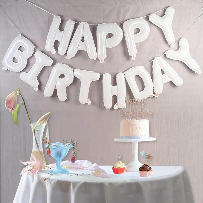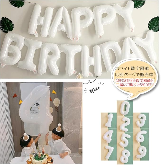 GRESATEK 誕生日 バルーン 白 HAPPY BIRTHDAY ハッピー バースデー 16インチ 風船 文字 写真映え 飾り付け ホワイト