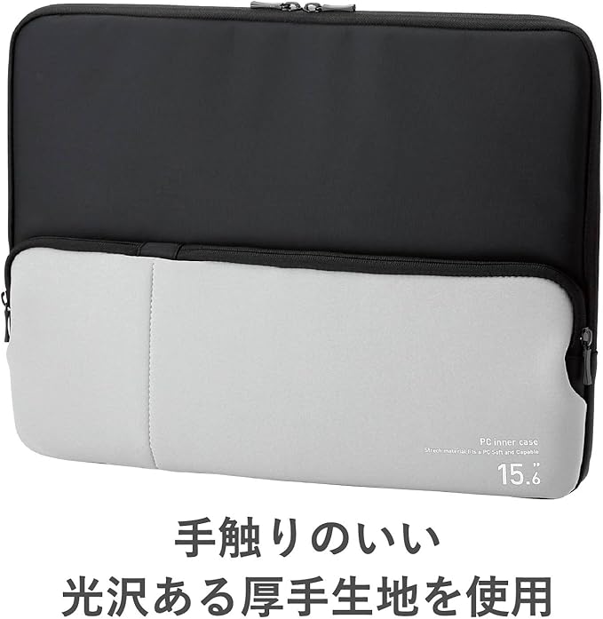 ●カバンの中にすっきり収納!マウスとACアダプタを同時に収納できる伸縮専用ポケット付きソフトインナーバッグ。●汚れにくい高級感のある生地を使用し、パソコンをキズや汚れから守るインナーバッグです。●15.6インチサイズまでのパソコンに対応しています。●前面にマウスやACアダプタなどの分厚い収納物にも対応できる伸縮ポケットが付いています。●出し入れしやすいフルオープンタイプのダブルファスナーを採用しています。●ファスナー引き手部分に指の膨らみに沿った曲線型のグリップを採用し、スムーズな開け閉めが可能です。