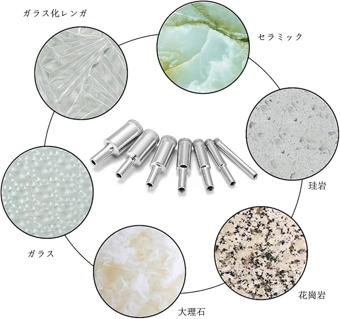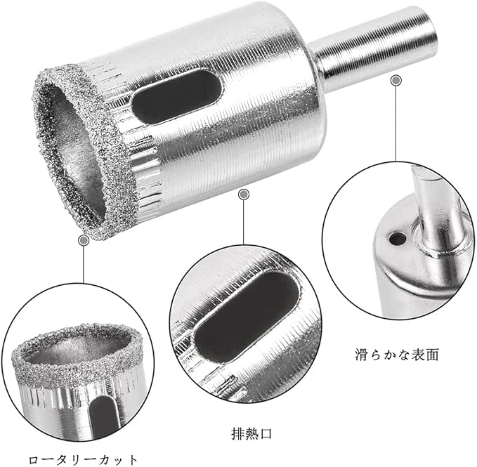 使用範囲:電動ドリル、充電式ドライバー、ボール盤での使用に適しています。 ガラス、セラミック タイル、大理石、花崗岩、セラミックなどにきれいで正確な穴や真円を作ることができ、潤滑には水だけが必要です。
