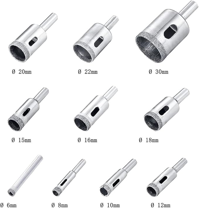 セオンフック ダイヤモンドホールソー コアビット タイル穴あけ 6mm~30mm 10本セット