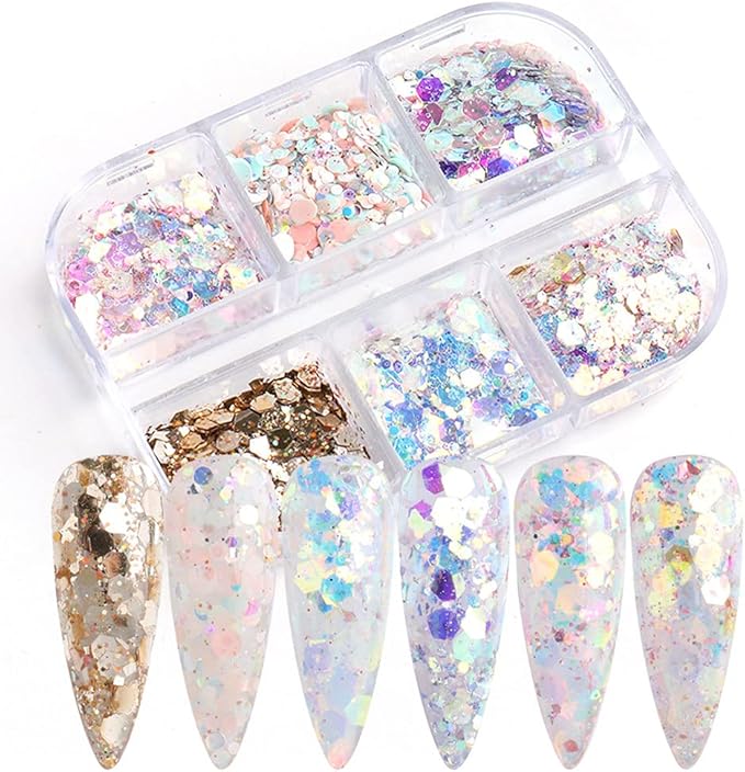 6色/ボックス オーロラ 輝いている ネイルグリッター ネイルパーツ ネイルデコ デコレーション 装飾品 ネイルアート