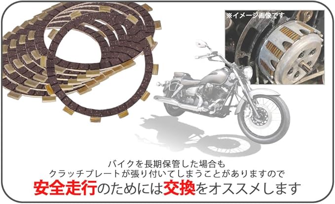 また、バイクを長期保管した場合も、クラッチプレートが張り付いてしまうことがあり、安全走行のためには交換をおススメします。