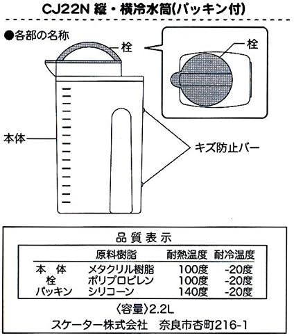素材・材質:本体=メタクリル樹脂 栓=ポリプロピレン パッキン=シリコーン