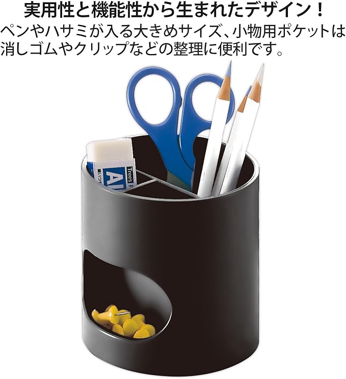 ●大きめのペンスタンド。●小物用ポケット付きです。