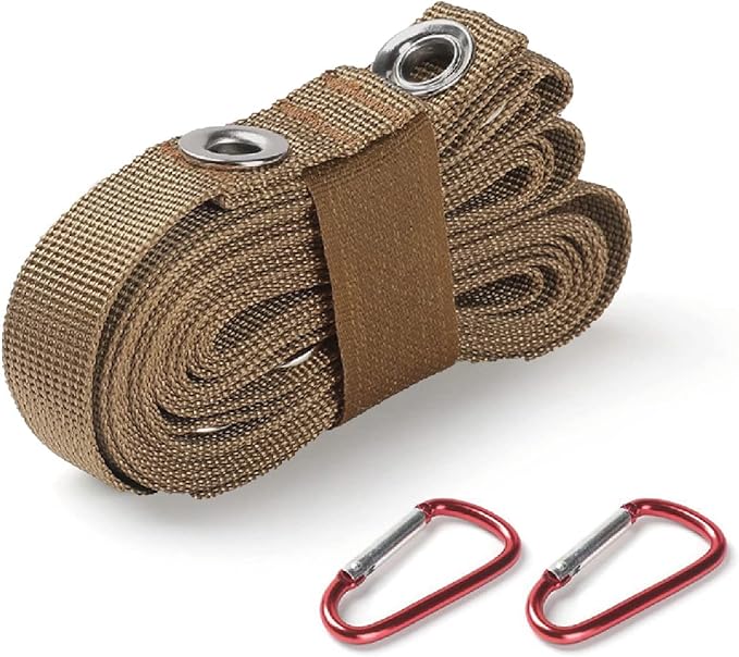 YAPJEB タープ延長ベルト 小川張り ベルト ロープ 3m セッティングテープ タープロープ キャンプ 設営 ガイライン 物干しロープ アウトドア 多機能 カラビナ付 (カーキ)