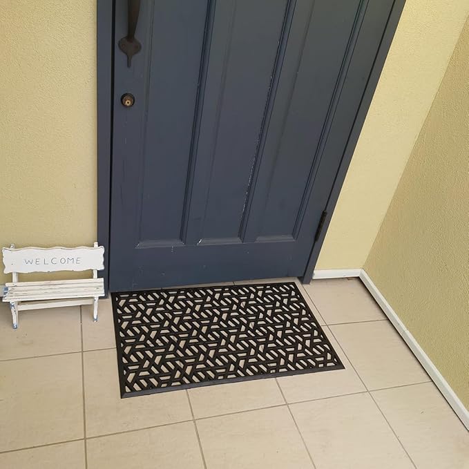 イタリアVELCOC社の屋外用玄関マットです。玄関に置くと、まるでアイアン(鉄製)のように高級感を演出してくれます。ゴム製のため滑りづらく、お手入れも水洗いで簡単です。