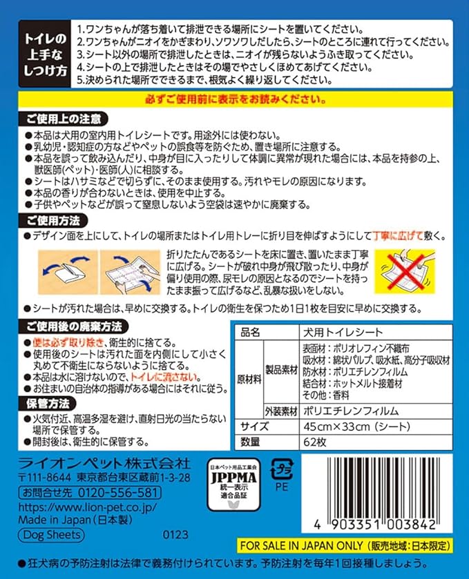 ライオン アロマで消臭ペットシート レギュラー 62枚入 4個 ケース販売 LIONPET